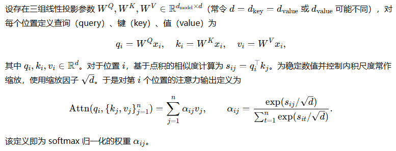 本节作为教材章节,系统而严格地给出注意力机制与 Transformer 的数学形式、矩阵化推导、位置编码方法、注意力稀疏化与近似方法,以及归一化与残差结构的理论分析。每一处推导按照步骤展开,给出必要的假设、引理与结论,证明过程完整,便于在教材或课程中直接采用。