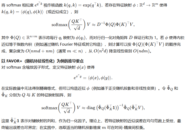 针对某一近似方法(例如 FAVOR+ 或 Nyström)给出严格误差界与收敛率;