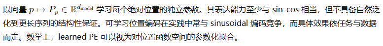 Learned PE 在训练数据内可能更灵活,但缺乏外推保证。