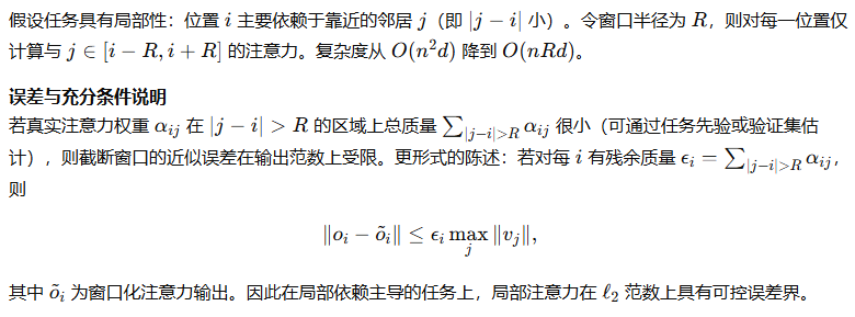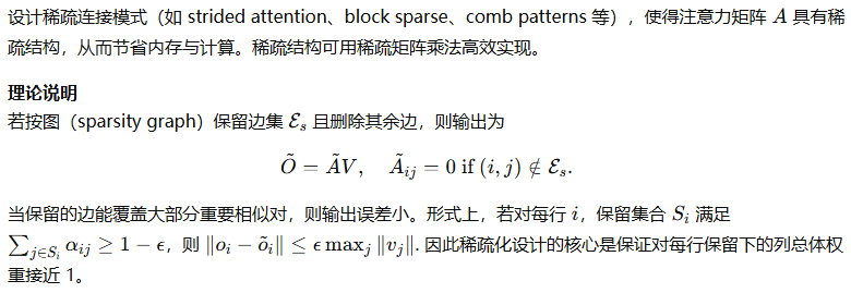 保留行总权重原则:任何稀疏化或近似方法若能保证对每行保留足够的权重(或近似地保留高质量的键集合),其输出误差受限。