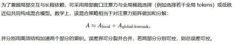 任务先验与局部性:若任务具有先验(局部性或长程稀疏依赖),则特定稀疏结构或混合策略可在实践中取得良好效果。