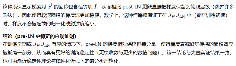 对于非常深的 Transformer,建议采用 pre-LN 以提升训练稳定性与更快捷收敛。