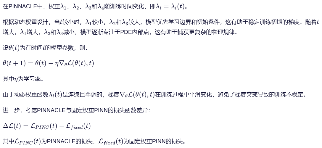 - 在训练初期,模型对PDE残差的学习需求较大,因为模型尚未充分学习物理规律。