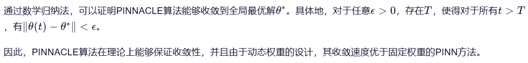 收敛性:理论证明表明,PINNACLE能够保证收敛到全局最优解,且收敛速度优于固定权重PINN。