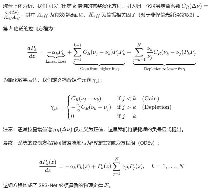 为了构建SRS-Net的物理约束核心,我们首先必须推导描述多信道光波在光纤中相互作用的数学模型。
