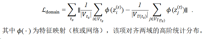 为解决分布偏移,引入基于嵌入均值或高阶统计的对齐损失,例如最大均值差(MMD)形式:
