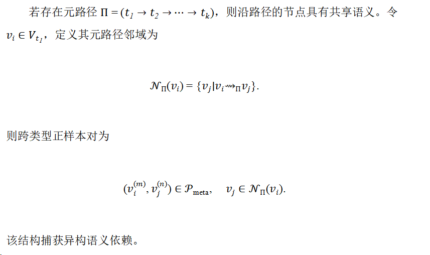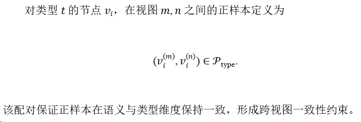 异构对比学习的关键在于正负样本对的合理构造。由于节点类型不同,若直接将所有节点视为候选样本,会破坏语义一致性,因此必须定义类型一致的正样本与类型可控的负样本。