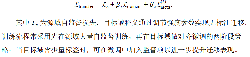 异构图的自监督学习具有天然迁移能力,可用于新类型、稀疏类别或不同结构分布的图。迁移学习过程包含两个核心机制:跨域对齐与结构语义保持。