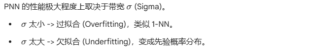 这是 PNN 的数学核心。为了保证数值稳定性,我们强烈建议在 Log Domain (对数域) 进行计算,防止高维数据下的下溢(Underflow)。
