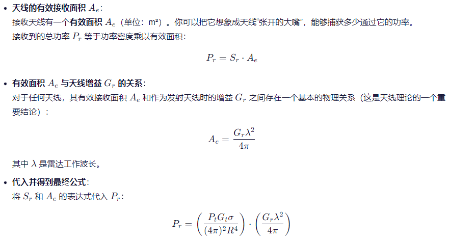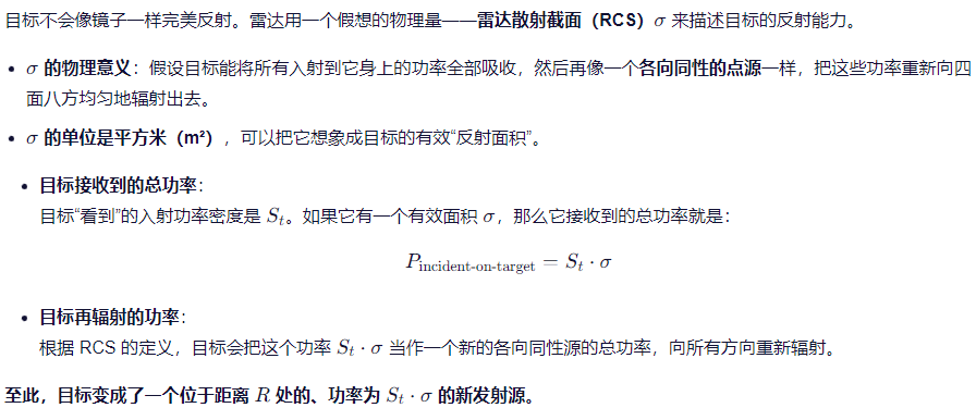 通过以上六步,我们从最基本的物理图像出发,完整地推导出了雷达方程。初学者可以按照这个逻辑,自己在纸上一步步重现整个过程。