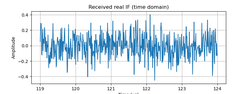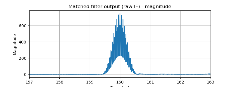 print(f"Compressed SNR (matched filter) on raw IF signal: {snr_mf_if_dB:.2f} dB")