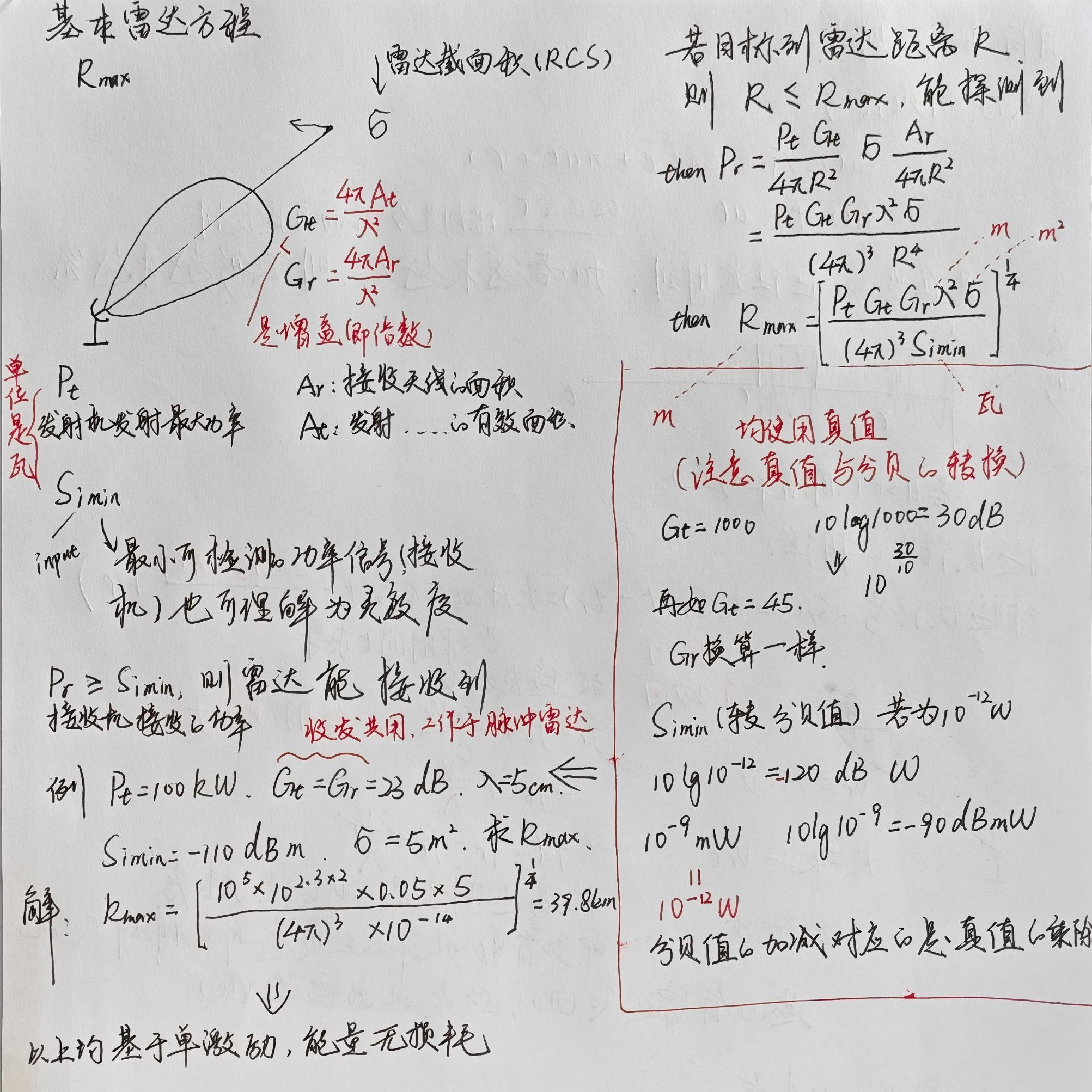 因为你不这么小,你根据那个方程来算,你就算不到探测的距离那么远,对不对?如果你这个太大的话,你这个r max就达不到那么远。所以接收机灵敏度这个参数值往往是非常小的。这块一定要注意啊,最怕有的同学啊,我同学上课的时候没有注意听啊。考试的时候我给你写个负的110 DB行,然后他一看,诶,这个接收到的这个最小的可见得功率咋还冒出来负的值了,他也不知道这个负的值就是一个分贝值要转化成真值。大家想想,一个负的分贝值,你按照我们这种转化转换成真值。