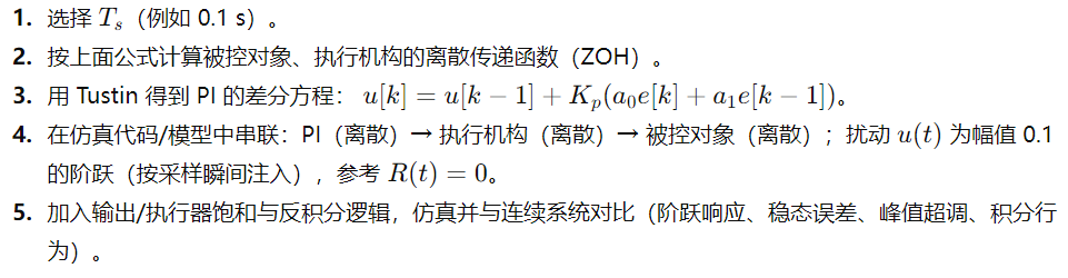 2) 被控对象、执行机构的 ZOH 精确离散化(第一阶系统)
