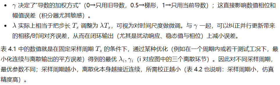 因此结论是:如果希望在较大采样周期下仍保持良好仿真精度,采用带参数调整的数值积分器(即书中方法)优于常规的 ZOH/零阶保持。
