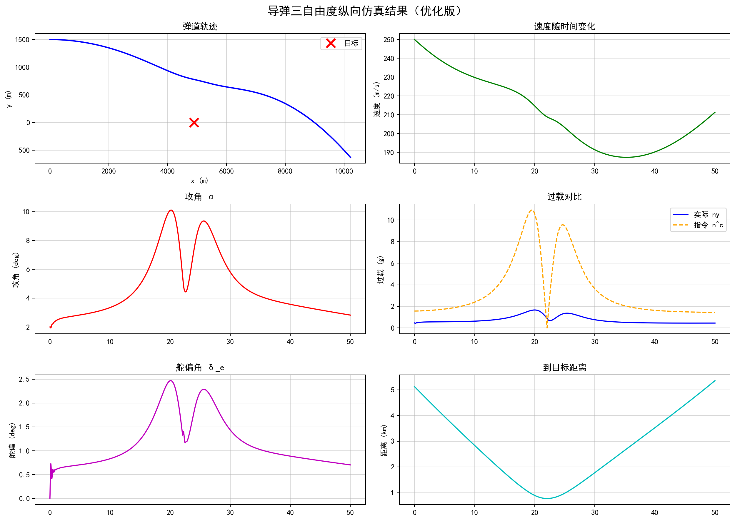 优化版3:导弹纵向三自由度 + 比例导引 + 姿态控制环