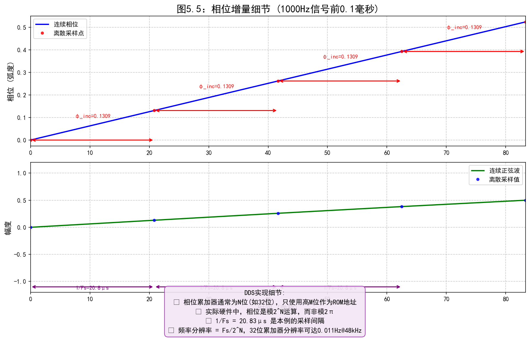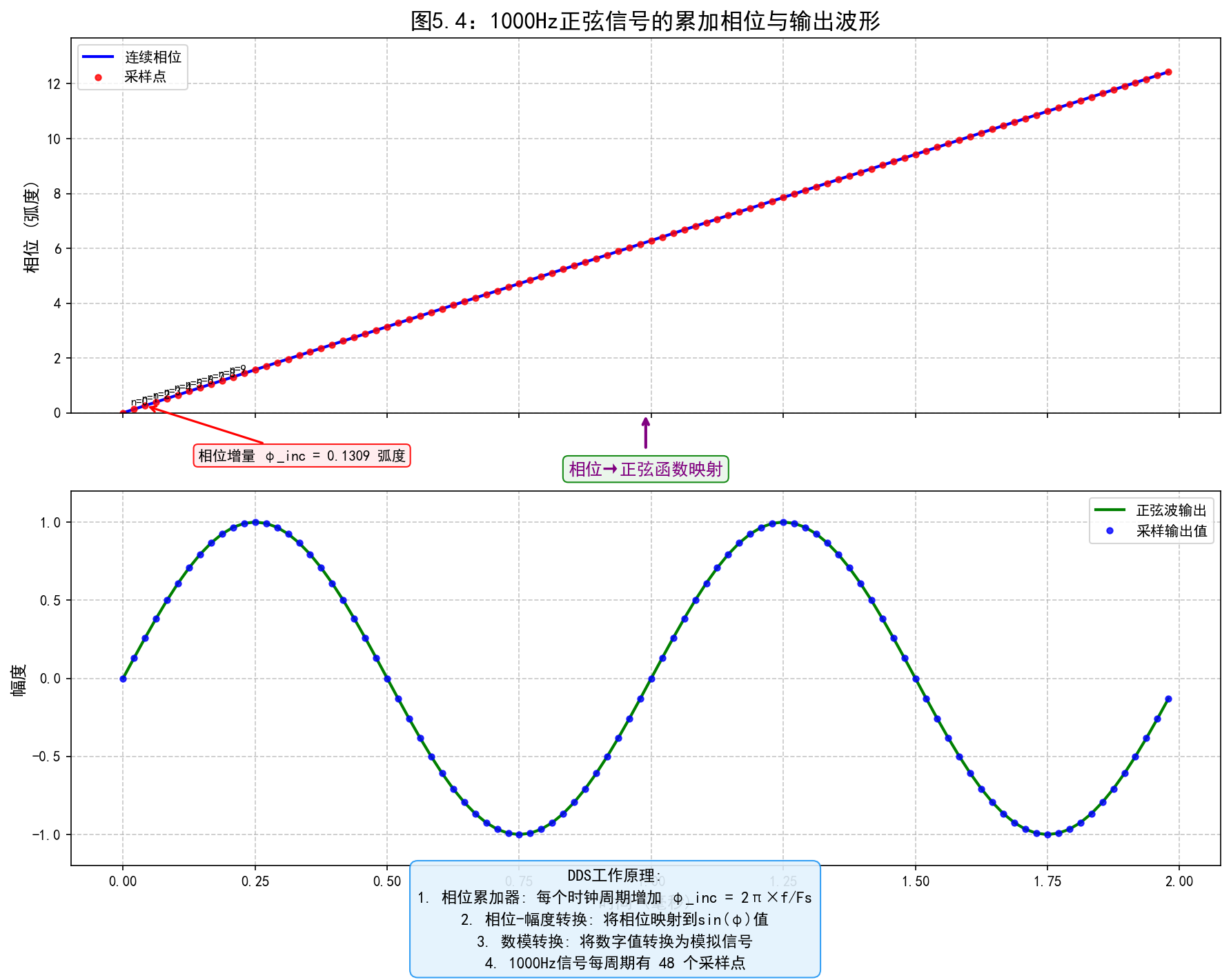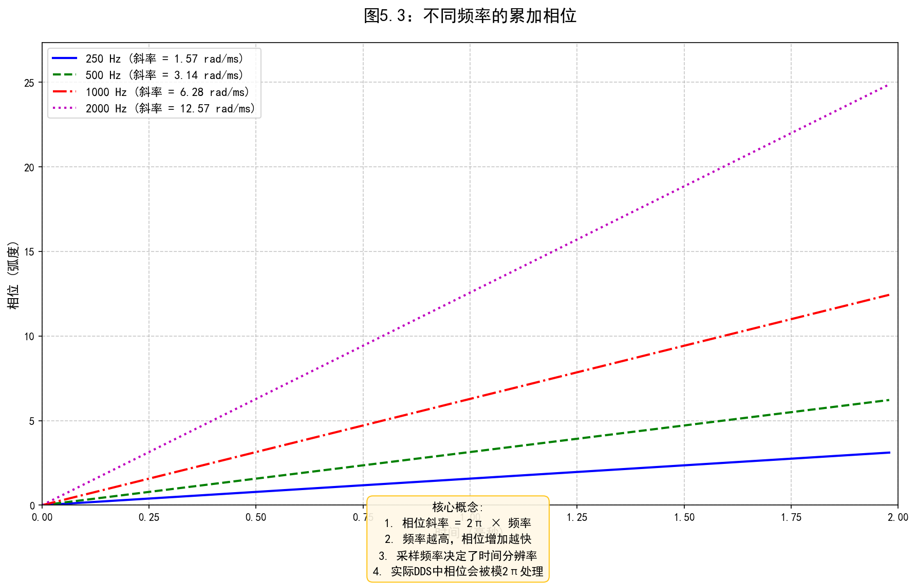 plt.ylabel('相位 (弧度)')