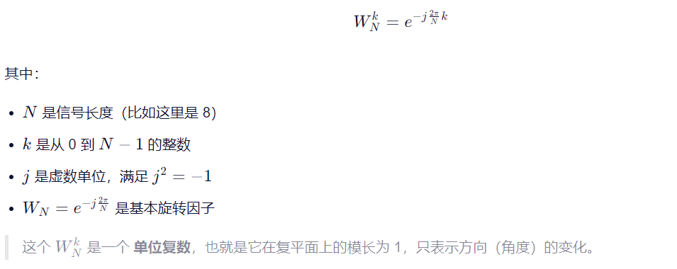 在 DFT 和 FFT 中,有一个非常重要的概念叫 旋转因子,通常记作: