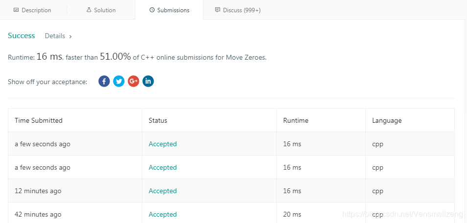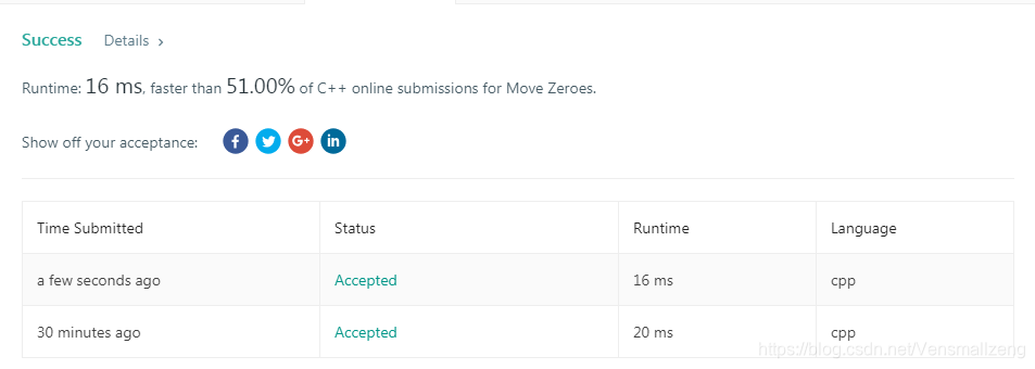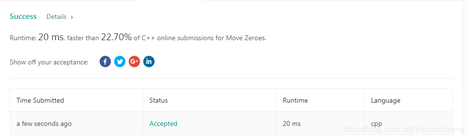提交后的结果如下,很显然此时代码的时间复杂度为O(n)(存在循环次数为n的for循环),空间复杂度也为O(n)(存在辅助数组nonElements),因此仍需继续优化代码。