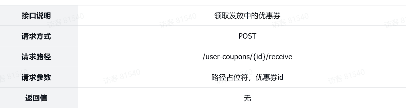 不过,用户id我们可以自己获取,因此前端只要传递优惠券id即可。只传一个参数,我们可以直接用路径占位符传参。