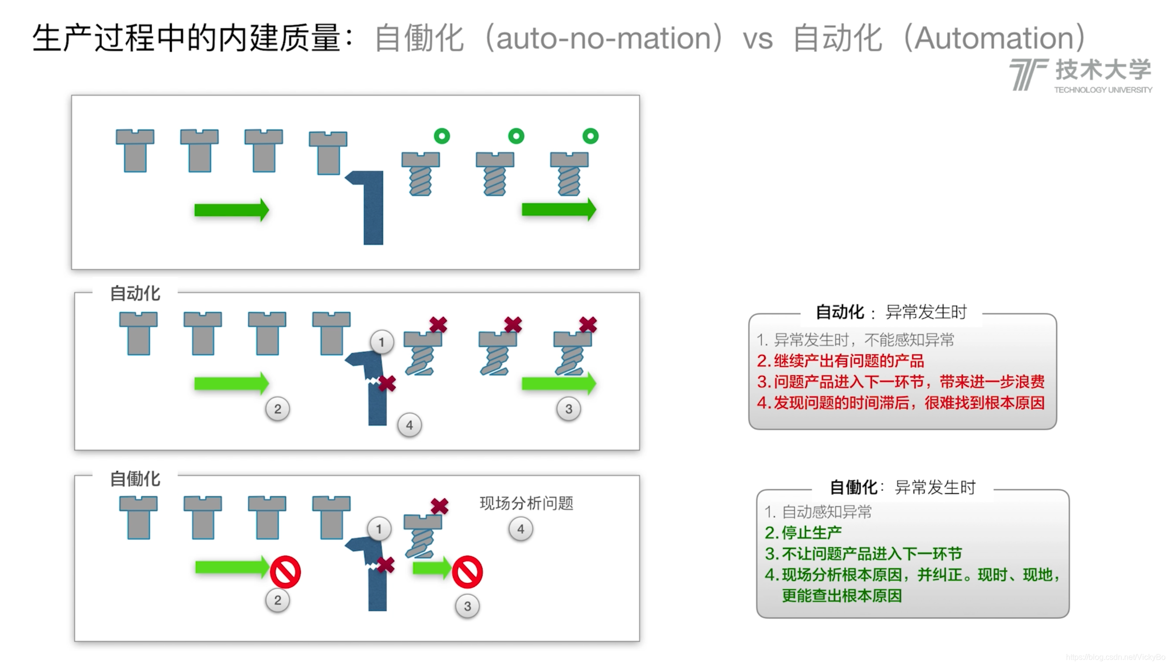 内建质量:在每个工件的每个环节内建质量,而不是依赖于最后的检测环节。