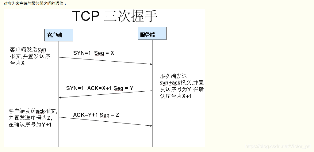 客户端向服务器发出连接请求报文,这时报文首部中的同部位SYN=1,同时随机生成初始序列号 seq=x