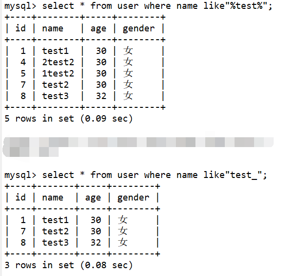 like 模糊查找(“_”匹配一个,“%”匹配一个或多个)