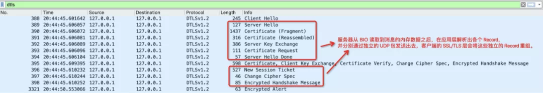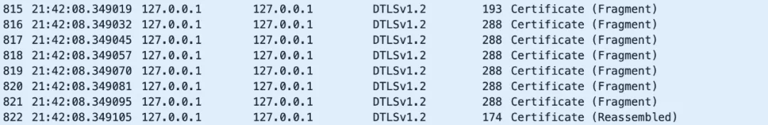 下图是 DTLS 分片独立发送后的效果: