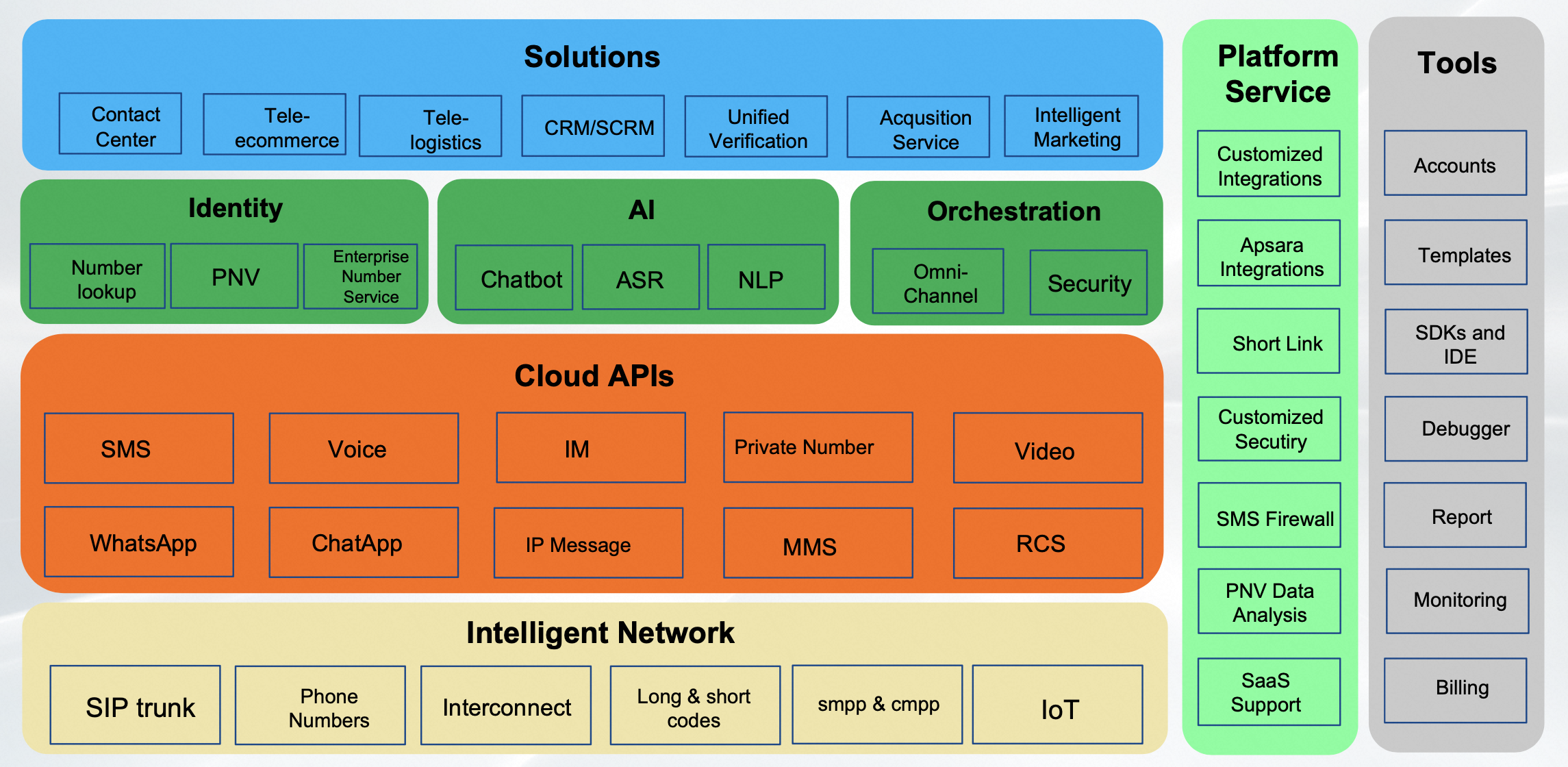 阿里云CPaaS平台,基于阿里巴巴集团的生态规模、业务范围以及在云计算、零售、支付、通信和物流方面的深厚经验,是一个具有全球通信覆盖面和丰富应用、高扩展、高可用的CPaaS平台,在中国和东南亚已经展开重要业务和拥有大量客户。