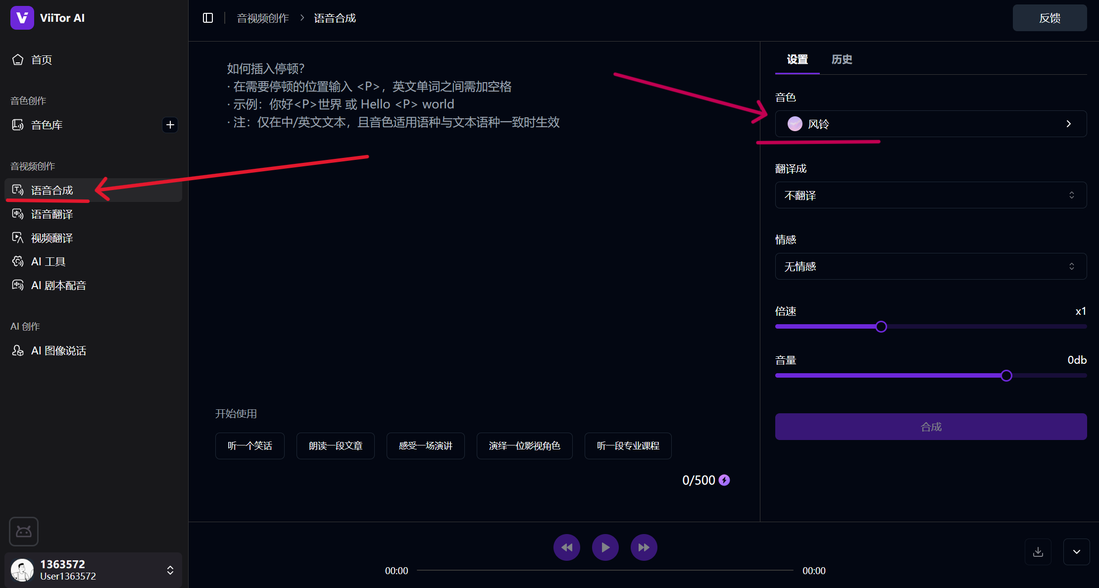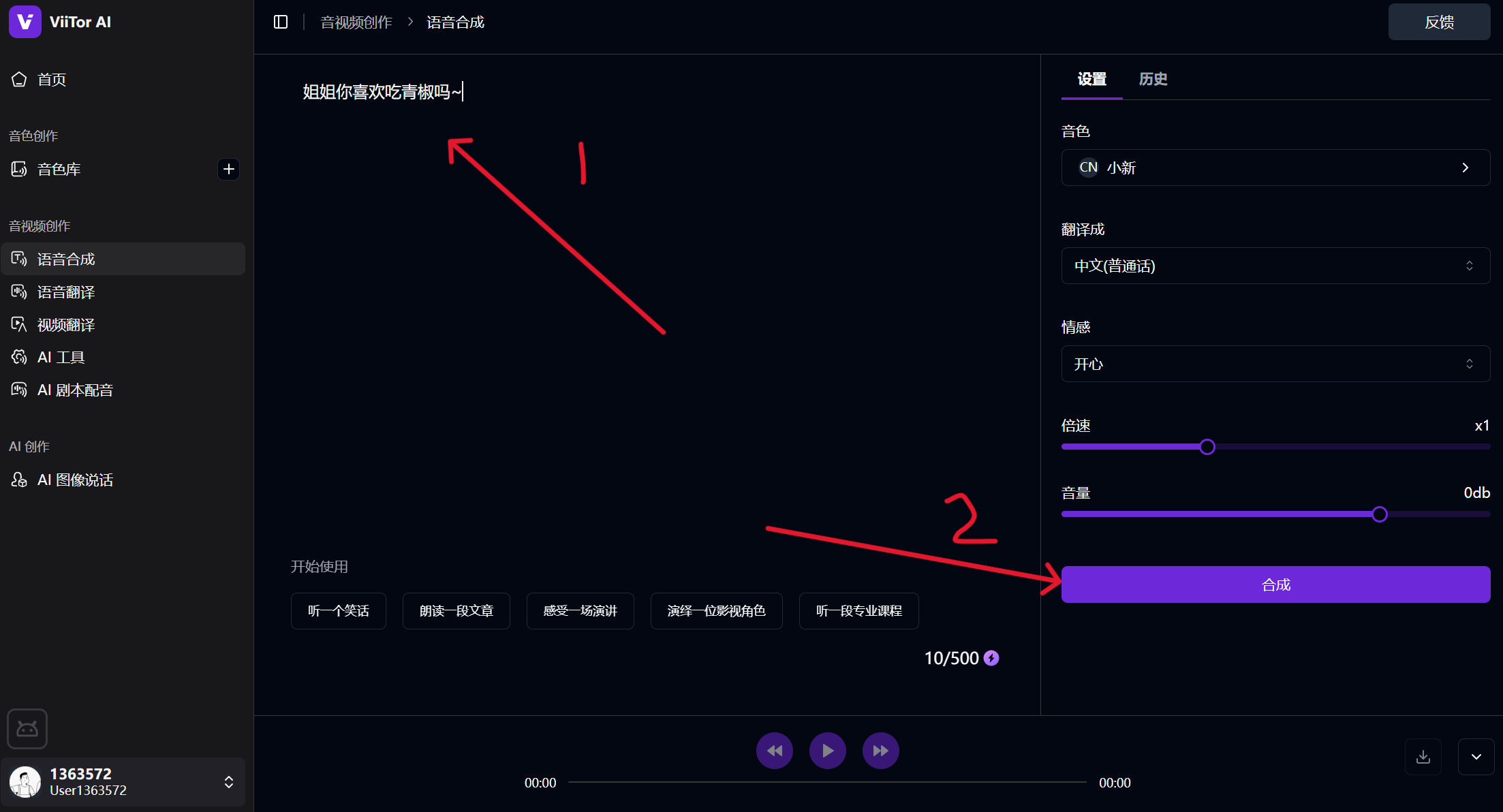 点击「语音合成」