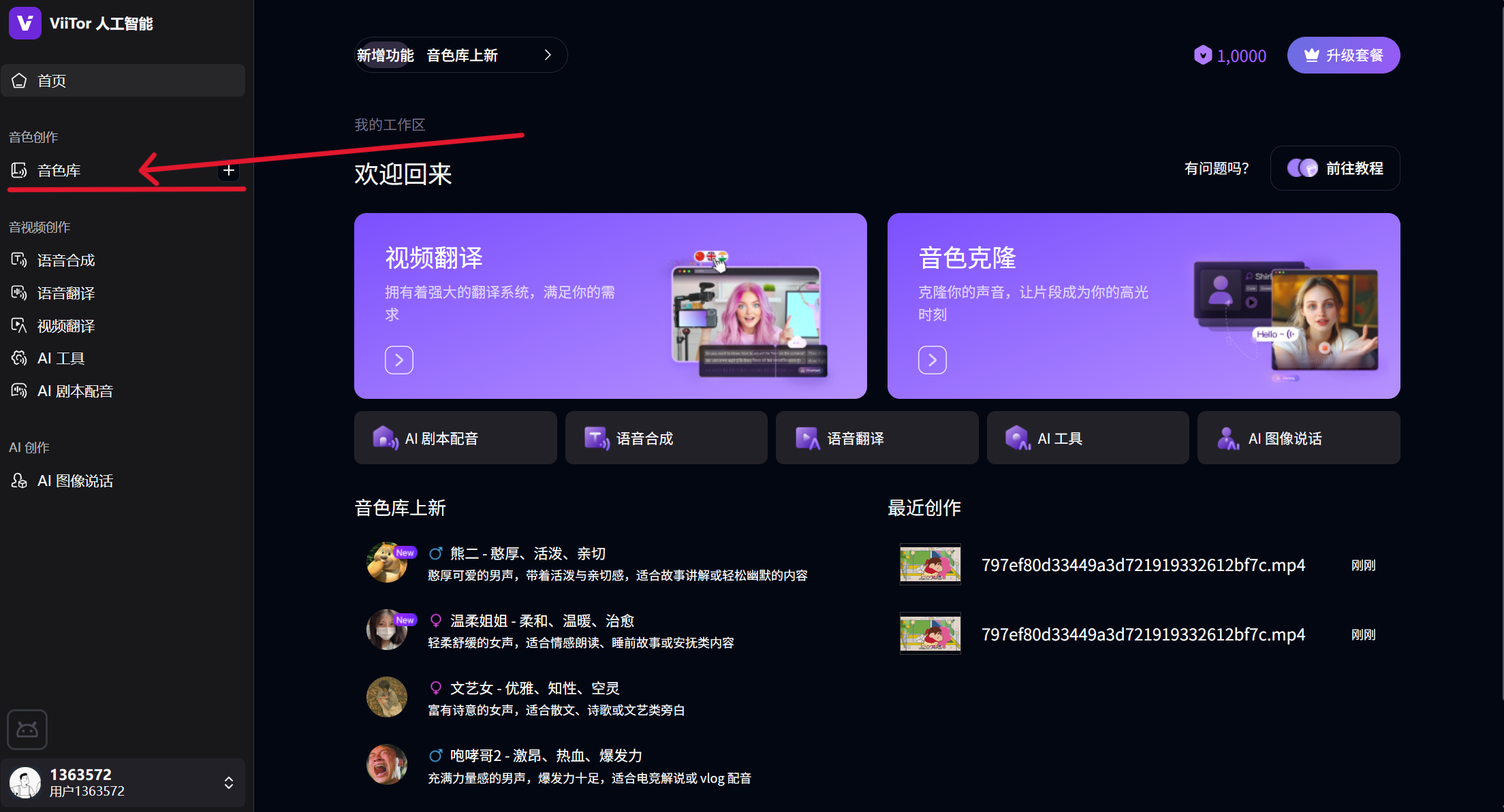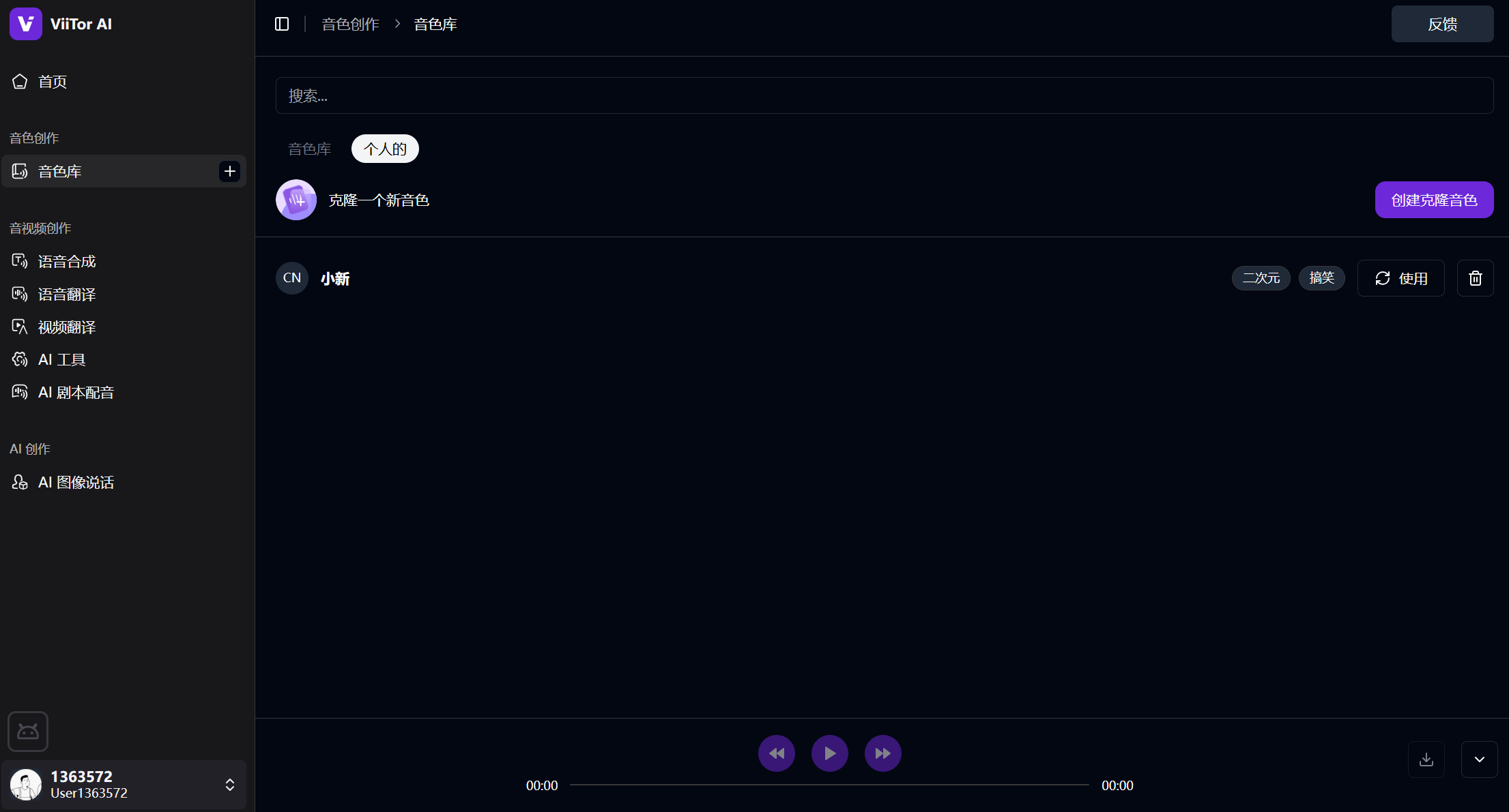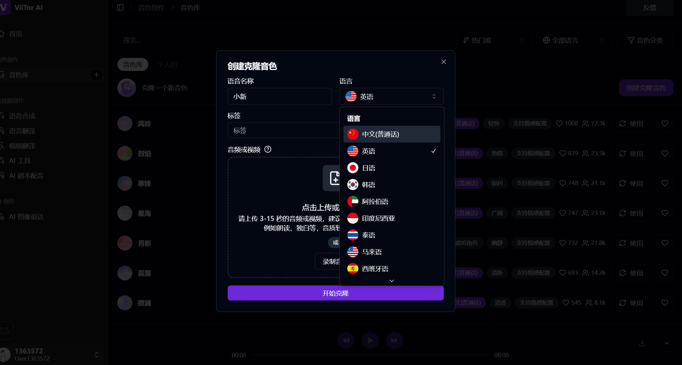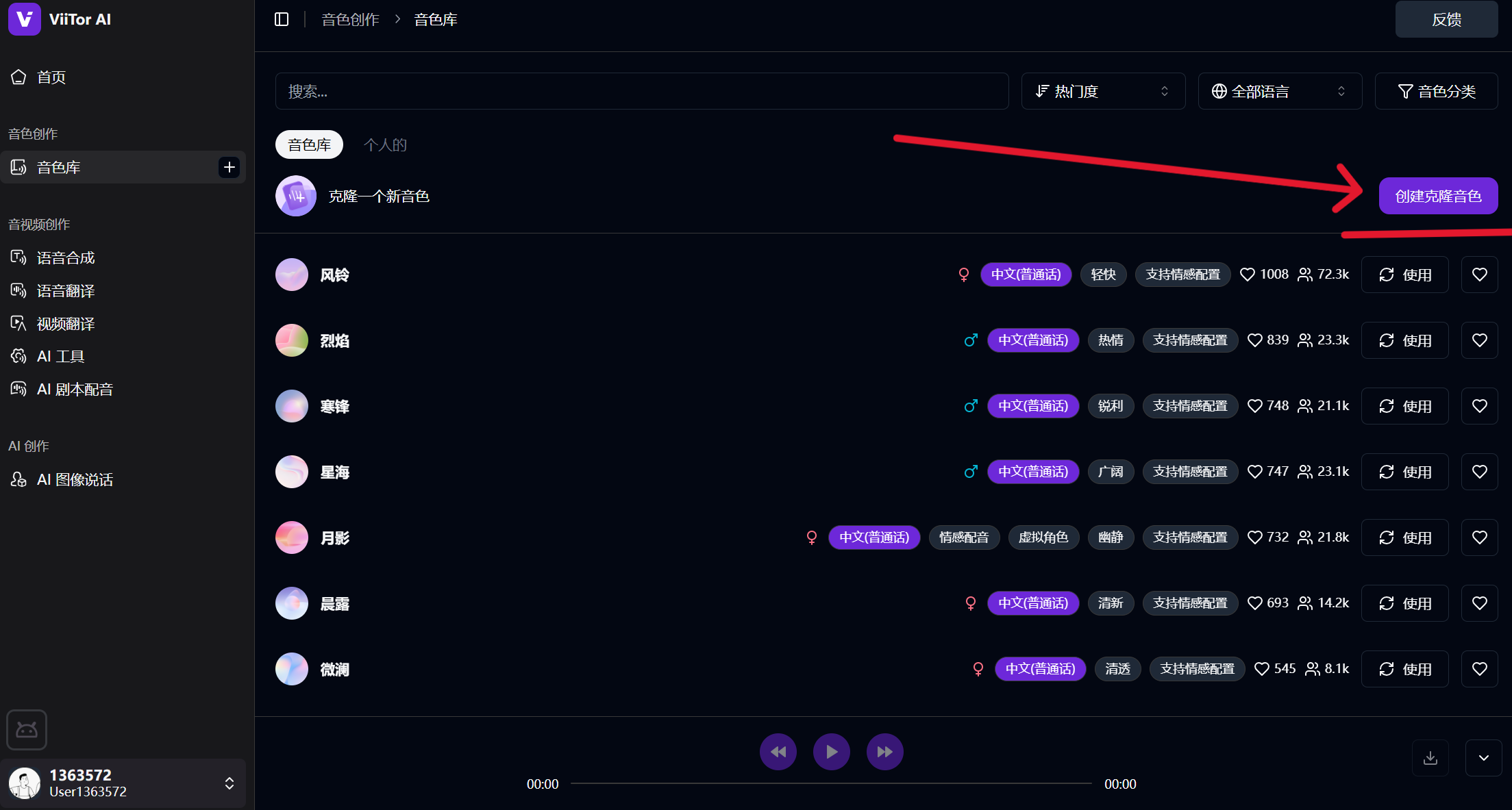 👉登录ViiTor AI → 点击「音色库」→ 创建克隆音色