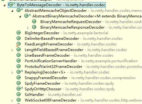除了和其它解码器组合形成新的解码器之外,ByteToMessageDecoder 也是很多基础解码器的父类,它的继承关系如下图所示: