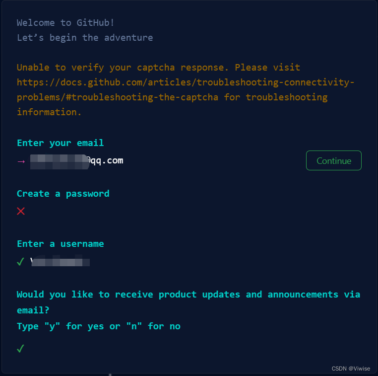 补充2:输入名字,点击continue后显示以下情况,则说明密码有问题,重新输入一个(可包含字母、数字、符号)