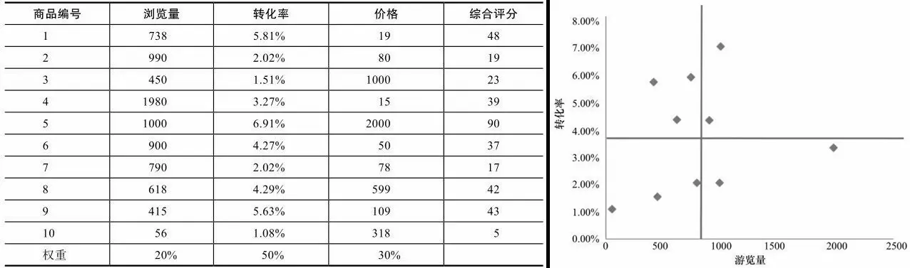 内容综合评分=浏览量评分×浏览量权重+转化率评分×转化率权重+价格评分×价格权重