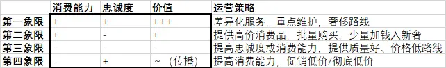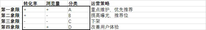 内容4象限分类表(横轴代表浏览量,纵轴代表转化率,进行矩阵分析,参考第43条)
