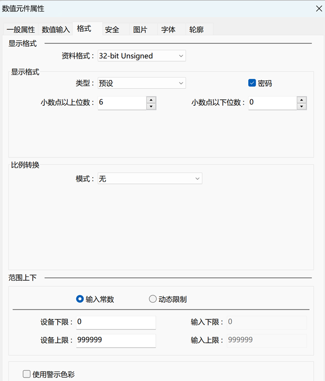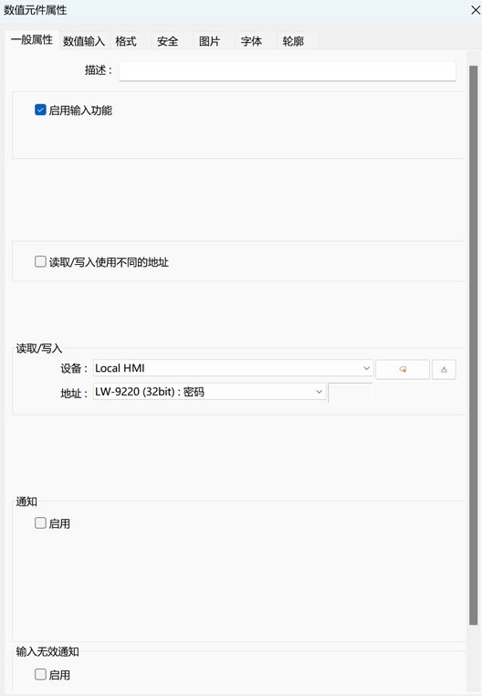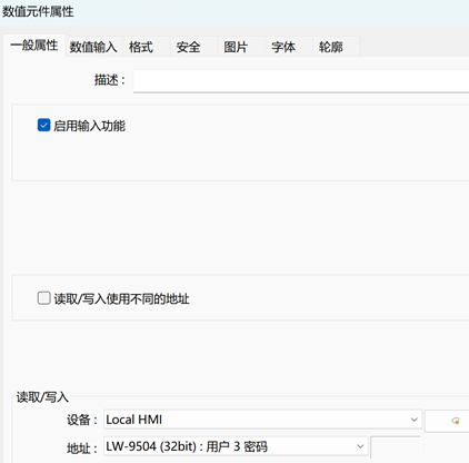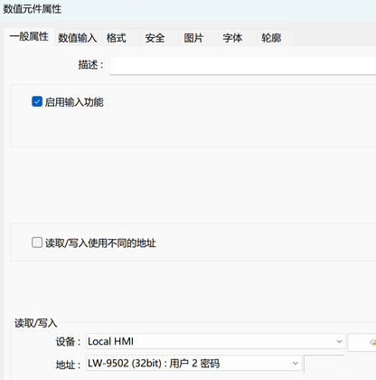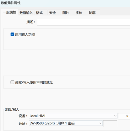 密码输入框读取/写入地址为LW-9220,格式属性里需勾选“密码选项。