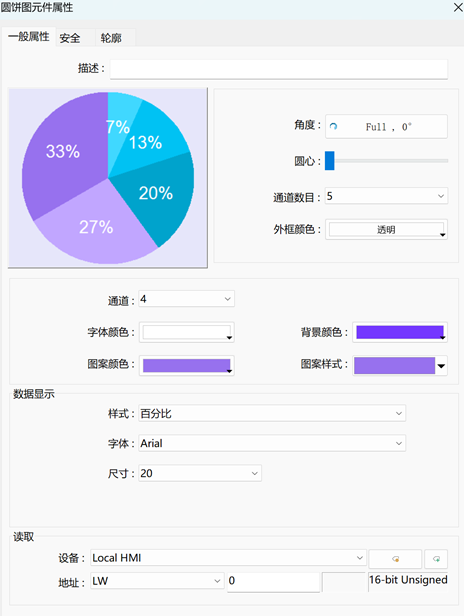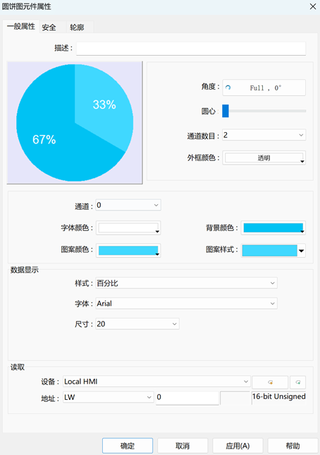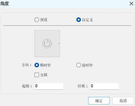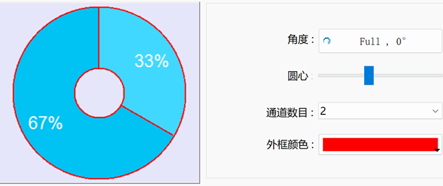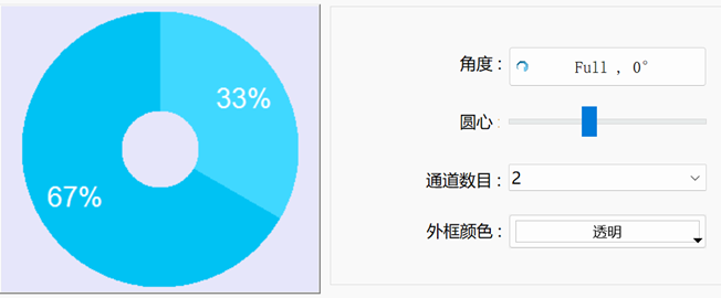 1、角度:设置圆饼图的起始角度、顺时针或逆时针,当不勾选“全圆”时,结束角度必须要设置。