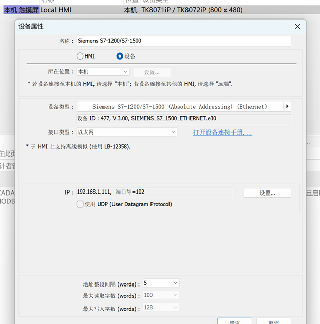2、通讯的IP设置与PLC一致(与绝对地址访问的操作一样);