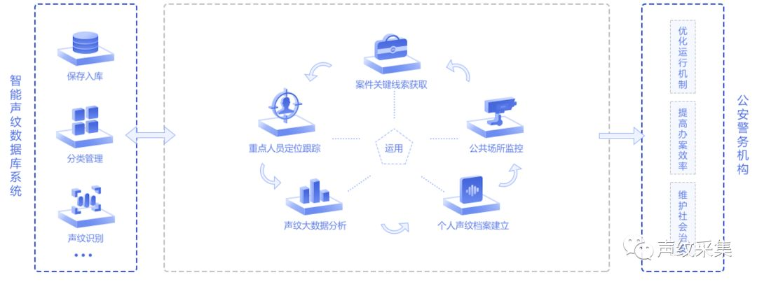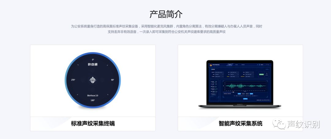 目前,除了金融领域外,声纹正在进入公共安全领域。快商通面向公安领域推出的 BioVoice 2.0 标准声纹采集设备正是专门为标准声纹采集场景研发的声纹采集设备,采用智能化麦克风集群,支持单向/全向拾音、多种文本采集方式。配套集采集、多标签入库、分类存储、实时检索功能于一体智能化声纹采集系统,可连续性创建采集,批量入库,缩短多人采集入库时间成本,保证声纹信息采集内容的完整性和真实性,提高声纹采集的质量和效率。一次语音录入即可采集到符合公安机关声纹建库要求的高质量声纹数据,为声纹鉴定和比对提供坚实的基础。