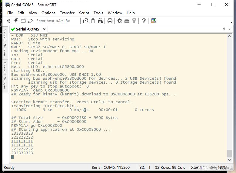 该代码示例展示了在STM32MP1xx微处理器上如何初始化EXTI和GIC中断控制器,以及如何处理按键按下事件。当按键1、2或3被按下时,程序会通过中断服务函数打印对应的序列(11111111、222222222、333333333)。