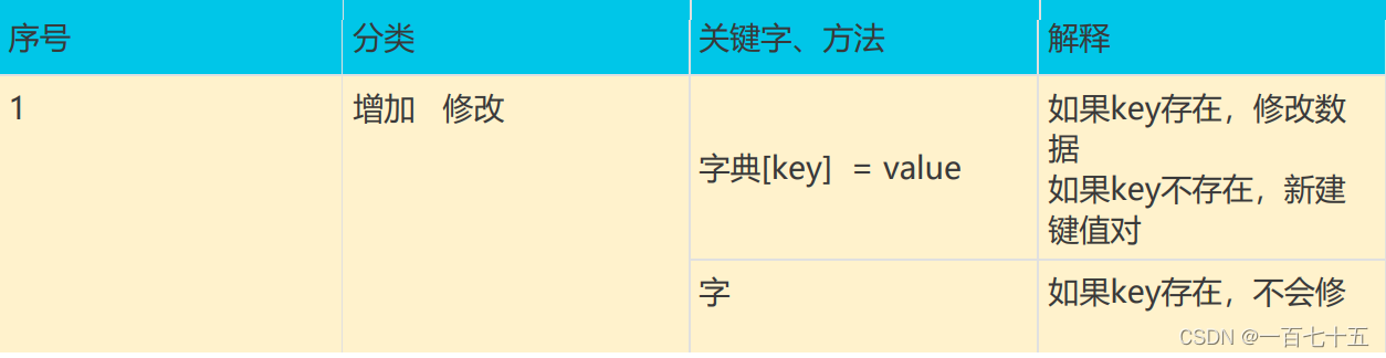 字典[key] = value的形式进行。如果key已存在,则修改对应的value;如果key不存在,则新增一个键值对。 - 删除:使用