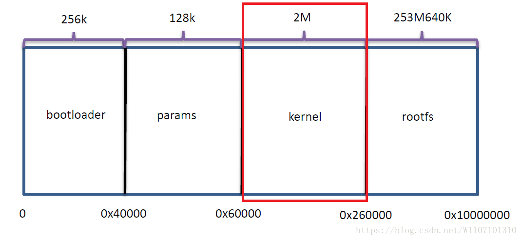 在memory_tag中,我们向内核传递了SDRAM的起始地址为0x30000000,SDRAM的大小为0x400000。