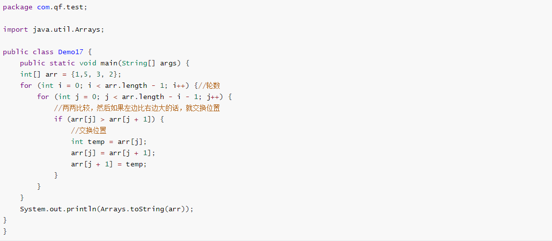 冒泡排序原理:比较两个相邻的元素的大小,如果左边比右边大,就交换位置。每一对都要比较