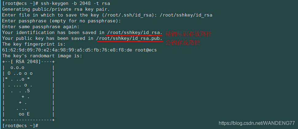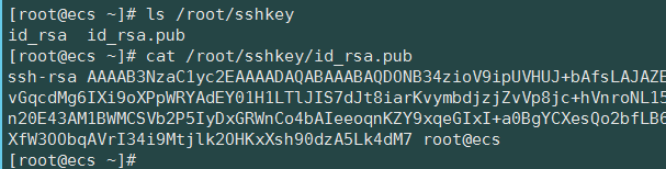 1、[root@ecs ~]# ssh-keygen -b 2048 -t rsaEnter file in which to save the key (/home/[USERID]/.ssh/id_rsa): # 提示输入密码,这里直接回车,密码为空。