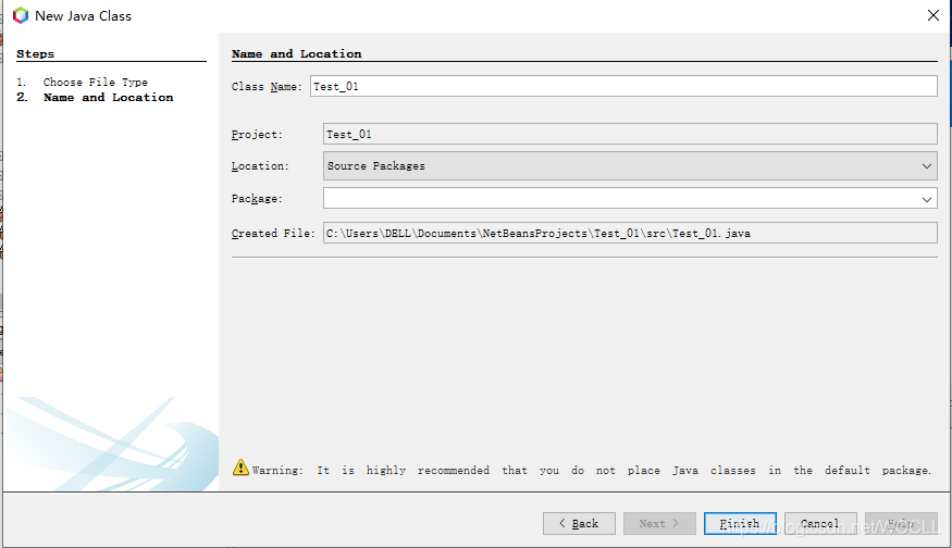 打开Test_01工程文件,选择Source Package----default package(右键新建一个Java Class):