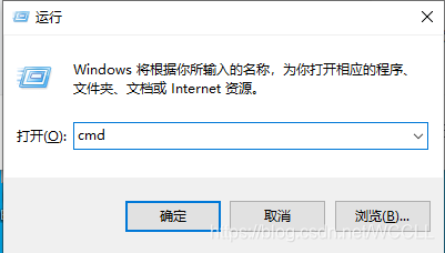 Win+R,输入cmd;