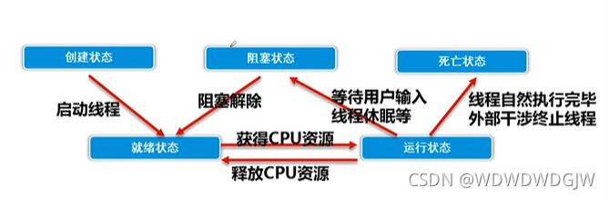 创建、就绪、运行、阻塞、死亡