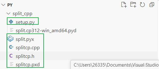 然后把cpp文件和头文件都与splitcp.pxd放在一起