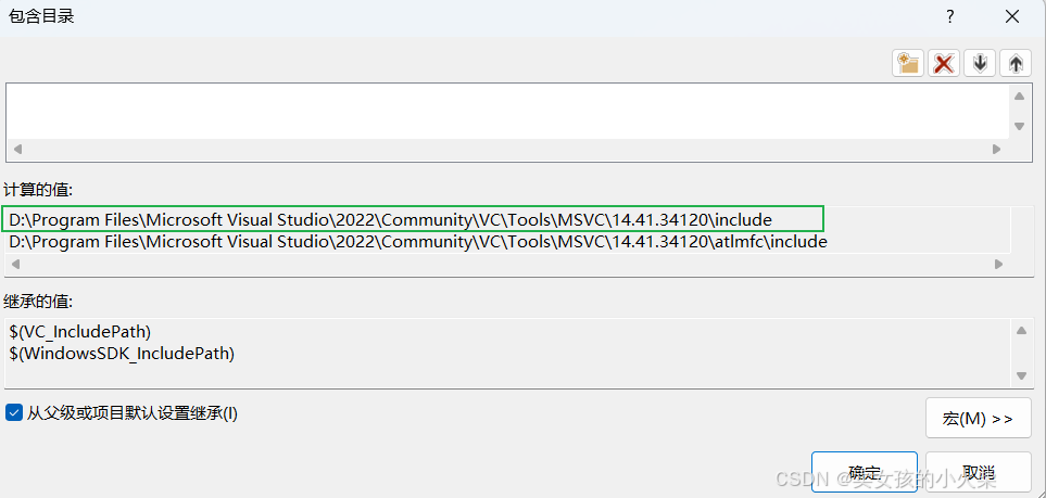 绿框中的就是头文件目录,同理你也可以找到库目录,这里就不放图了。