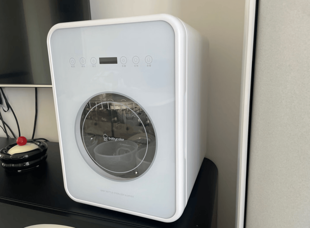 这款奶瓶消毒柜采用白色的配色,外观设计比较简约大气,功能按键一直排开设置在门面上,透明的门盖能够让用户实时查看消毒状况!柜门采用的是侧开门儿的设计,同时内里配置了紫外线消毒,对于宝宝的奶瓶或者是辅食用的小碗放进去能够进行消毒除菌烘干!而且宝宝的奶嘴,玩具 等等都可以放进去,十分实用。
