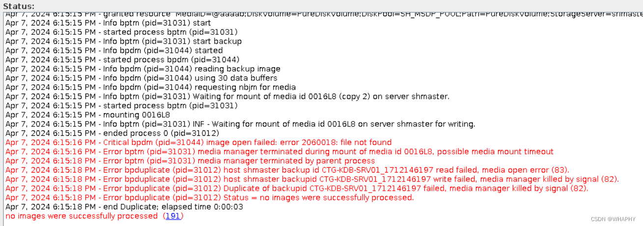 Apr 7, 2024 6:15:18 PM - Error bptm (pid=31031) media manager terminated by parent process